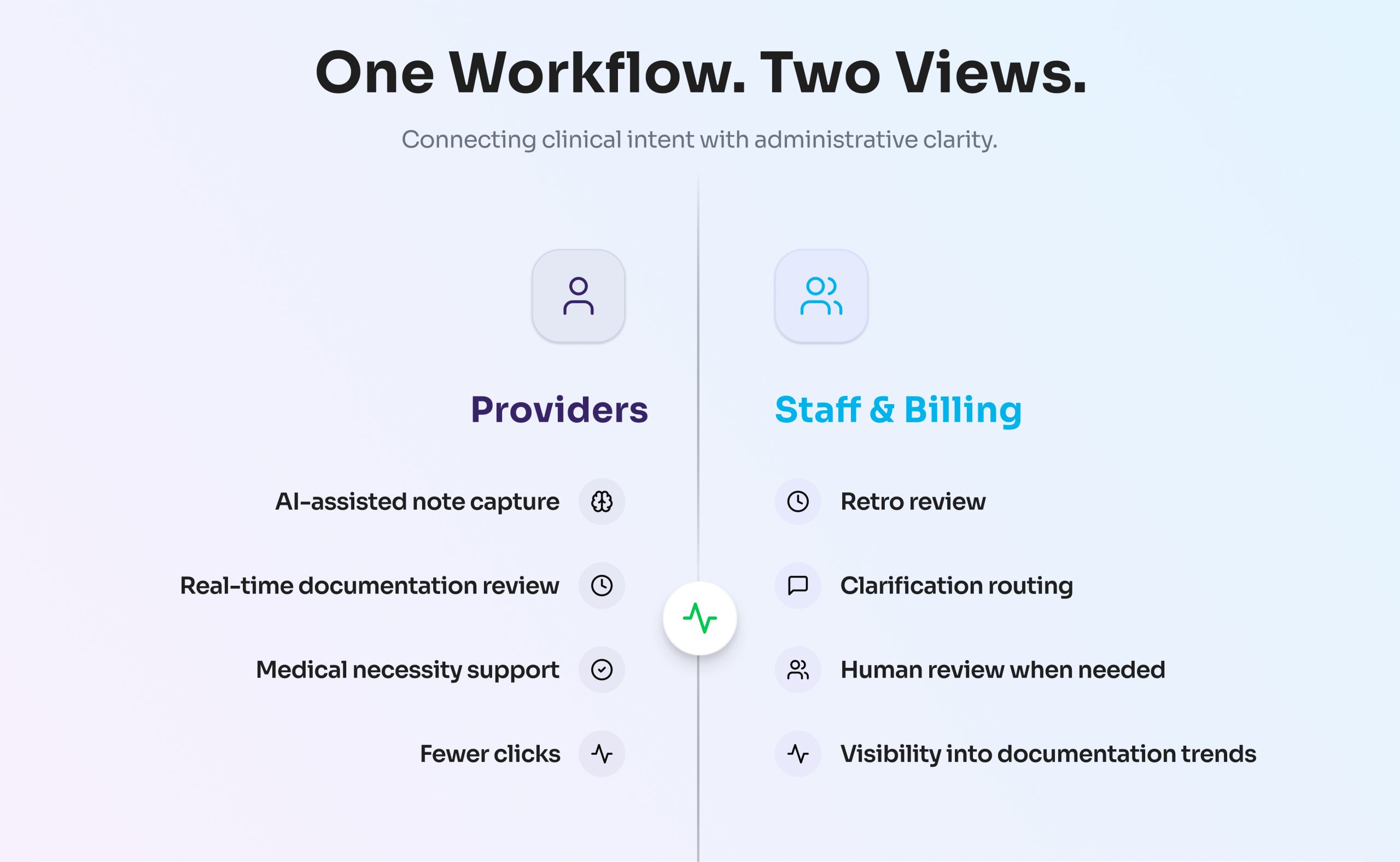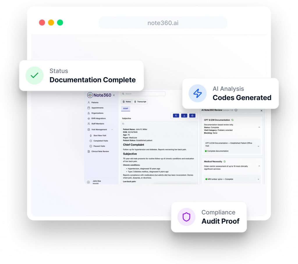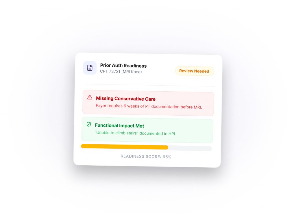 AI-assisted note capture and real-time review that support medical necessity, reduce rework, and strengthen documentation clarity — inside your workflow.