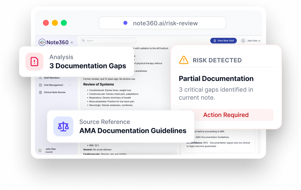 Note360 surfaces critical requirements while you document, not after you submit.